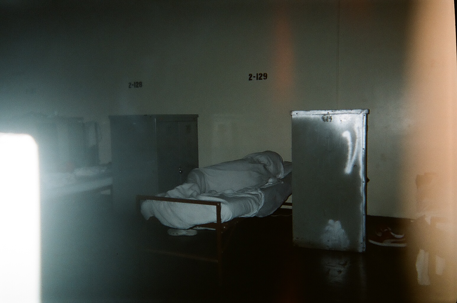 “This is a shelter in Brooklyn where I’ve been for twenty days. This is how the shelter is set up. You get a bed and locker. I was on the street for four years, except for the winters when I slept in The Bowery Mission. I decided to go into the shelter because I wasn’t getting any sleep. If you don’t sleep your mind escapes you.” – Cleveland Gibbs