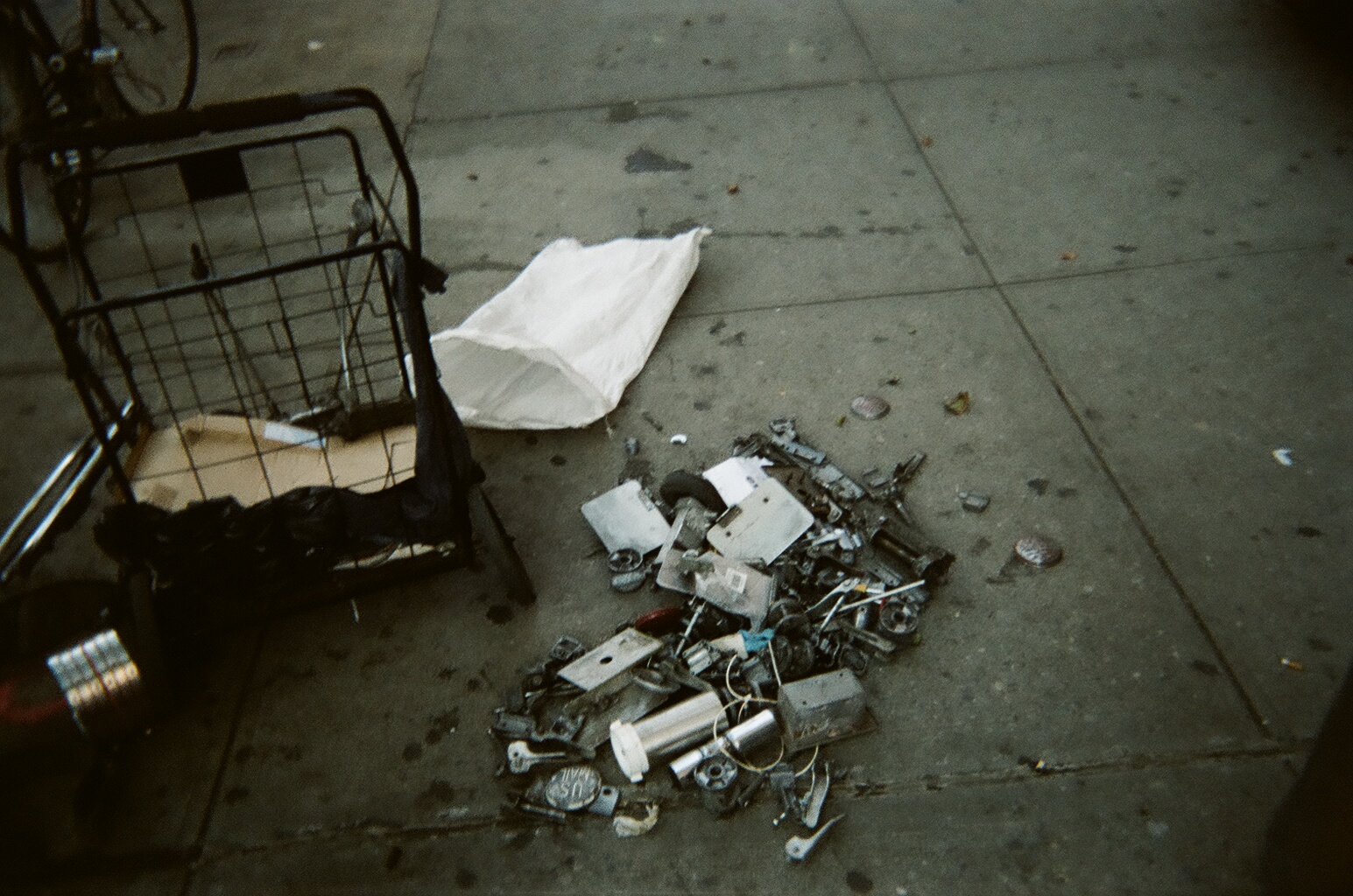 “That’s where I park my cart for scrap. They let me park it there. This is all my scrap and belongings. My personal belongings are in the shopping cart. I hide it by the library sometimes so that I can move around easier. I can make from twenty dollars a day up to two hundred dollars on a really good day.” – Dennis Brown